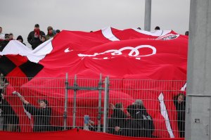 Abseits gute Angriffe abermals zu nichte gemacht. So erstickte nicht Oberhausen die Angriffe im Keim, sondern das Schiedsrichtergespann. Ingolstadt wurde nach und nach passiver. Nur die Fans waren mit ihren Gesängen immer aktiv. Die Schanzer-Fans die ein Riesen-Trikot überreicht bekamen, feuerten ihr Team bedingungslos 45 Minuten lang an. Das Spiel nahm weiter an Qualität ab. Erst nach einer halben Stunde wurde RWO gefährlich. Kim Falkenberg