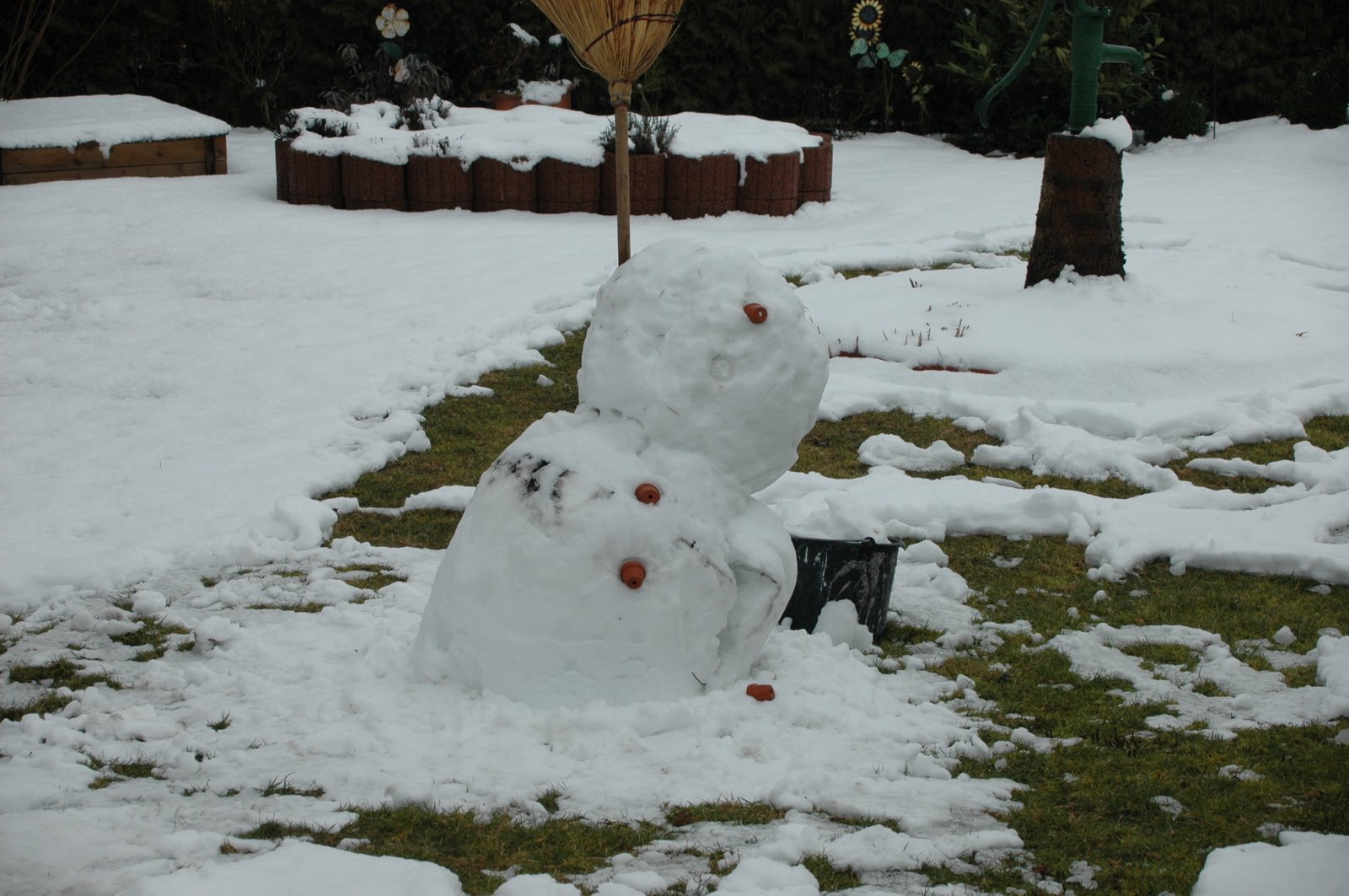 Wetter in keinster Weise nach. Einmal so, morgen so. Wir nähern uns dem März, dem Monat wo normalerweise die Temperaturen sich im Plusbereich sich befinden. Manchmal, wenn man Glück hat, schon im zweistelligen Bereich. Doch dieses Jahr kommt der Winter in Deutschland zurück und zwar recht spät. Wir schreiben den 17. Februar 2009. Ich stehe wie jeden Morgen, gewohnt spät, zehn Minuten vor Halb-Acht auf. Meine Oma rief von unten: „Zieh´ dich war an, es schneit draußen“. Dieses Satz, dachte ich, habe ich schon oft gehört. Und wie die Jugend halt so ist, unbelehr und unbeeindruckt trat ich um kurz nach halb meine Reise in die Schule an. Wie immer hinter zum Graben. Wo ein kleiner schmaler Weg, zur Straße meines Freundes führt. In den letzten Wochen, waren die Eisplatten auf dem Kiesweg gefährlich. Heute erwartete mich nach der Kurve was ganz anderes. Schnee. Ja, Schnee – eigentlich nichts besonders, denken Sie jetzt?! Doch es war so hoher Schnee, dass ich mein Rad schieben musste. In Folge dessen: nasse Schuhe, nasse Hose. Irgendwie kam ich dann doch in der Schule an. Eher nass als trocken. Meine schwarze Stoffjacke, glich einem Schneemann, so weiß war sie. Der Winter hält auch im flachen (350 – 400m) Donaumoos Einklang. Gerade jetzt! Aber da muss man durch. Mein Opa baute einen Schneemann, wie auf dem Bild zu sehen. So versinkt auch das flache Donaumoos im Schneechaos. Da hilft nur: warm anziehen und durch.