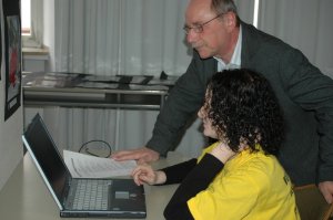 Seine Erfahrungen und Tipps für ein Europaprojekt gab Lehrer Herr Klepik (rechts) einer anderen Lehrkraft weiter.