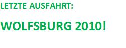 Nach langer Diskussion ist das DIE JUNGEN WILDENblog Motto für 2010 gefunden. Nachdem aktuell das 2009er-Motto „Das Jahr der unbegrenzten Möglichkeiten, yes I can“ herrscht. Folgt 2010 das DJW und mein persönliches Motto „Letzte Ausfahrt Wolfsburg“. Denn in Wolfsburg bzw. in Almke bei Wolfsburg, findet das VCP Bundeslager 2010 vom 27. Juli bis 7. August statt. Meine Sippe Streifenhörnchen, wird zum ersten Mal auf einem großen Lager dabei sein. Das Bundeslager 2010 wird das Highlight werden, neben der hoffentlich stattfindenden Abschlussfahrt der Abschlussklasse 2010 with me^^