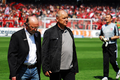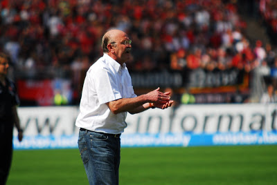 Schritten enttäuscht in Richtung Stadioninnenraum: Ingolstadts Trainer Horst Köppel und Peter Jackwerth