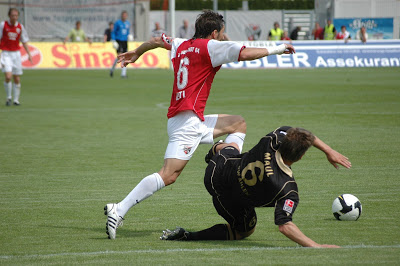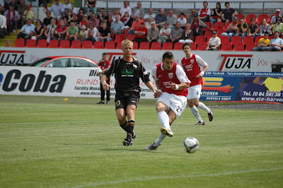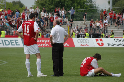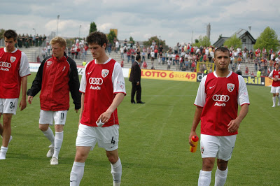 Machte ein Klasse Spiel auf der Mitttelfeldaußenbahn: Stefan LeitlZu Beginn der zweiten Hälfte, kam Ingolstadt nicht mehr so offensiv und erdrückend in die Partie, wie in der ersten Hälfte. Ahlen versuchte mehr Druck aufzubauen, kam aber ebenso wenig zu Chancen wie die Gastgeber aus Ingolstadt. Ingolstadt versuchte über die Flügelseiten mit Valdet Rama, Matthias Schwarz und Stefan Leitl Ahlen unter Druck zu setzen. Zwar kam die Mannschaft zu Flanken, allerdings konnte die Mannschaft die Bälle nicht konsequent genug verarbeiten. In der 66. Minute bekam der FC Ingolstadt einen bitteren Nackenschlag. Nachdem dem FC04 ein Handelfmeter verwehrt wurde, kassierte die Mannschaft nach einem Konter den Führungstreffer von Ahlen. Book leitete den Angriff ein und Reus vollstreckte auf halblinker Position zum 1:0. Ingolstadt war gelähmt, spielte aber weiter und versuchte nochmal alles. Der eingewechselte Ersin Demir, vergab nach einer Kopfballverlängerung von Markus Karl, den Ausgleich. Millimeter ging der Ball am Tor vorbei. Den entgültigen Knockout bekam der FC04 in der Nachspielzeit. Nachdem Naki einen Freistoß aus 22 Metern an die Latte schoss, staubte Toborg nach einem Ball von Chitsulo zum 2:0 ab (90+1). Nachdem Spiel standen die Spieler des FC Ingolstadt minutenlang gefasst auf dem Platz. Der Klassenerhalt ist nur noch rechnerisch und mit drei Siegen aus den nächsten drei Spielen möglich. Ingolstadt profitierte von der 2:5-Niederlage von Koblenz gegen den Zweitligameister SC Freiburg. Denn dann, wäre der Abstieg von Ingolstadt auch bereits rechnerisch beschlossene Sache gewesen.