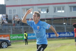 In der 2. Hälfte bot sich das ganze Bild wie zu Beginn des Spiels. Regensburg spielte munter auf. Zellner´s Kopfball parierte Lutz klasse (49.). Stefan Leitl und Zecke Neuendorf versuchten Schwung ins lahmende Ingolstädter Offensivspiel zu bringen. Doch richtige Torchancen ergaben sich nicht. Zecke Neuendorf konnte nicht so auftrumpfen wie gegen Offenbach und meckerte mehr über die Schiedsrichterentscheidungen, als er spielerisch auffiel. 20 Minuten war das Spiel nun ausgeglichen, bis Regensburg nochmal ausholte. Torhüter Lutz konnte gleich zwei Klasse Chancen entschärfen. Erst konnte Schlauderer (65.) Lutz nicht überwinden, danach scheiterte Schmid (69.) abermals am überragenden Ingolstädter Schlussmann. Zehn Minuten vor dem Ende, war Ingolstadt nun wieder überlegen. Sie konterten stark, spielten aber teilweise einige gute Angriffe nicht konsequent genug zu Ende. Regensburg hielt dagegen und versuchte nochmals kleine Stiche zu setzen, allerdings gelangen den Oberpfälzern keine richtigen Torchancen mehr. Und wie Phönix aus der Asche, tauchte wieder Moritz Hartmann vor dem Kasten auf und erzielte in der Nachspielzeit (90+2) das 2:0 – die Entscheidung. Hartmann der jetzt zehn Saisontore auf dem Konto hat, arbeitete im Spiel viel nach hinten und war wie eine emsige Biene überall zu finden, wo es brannte. Seine zwei Toren tüteten den Ingolstädter Sieg im Jahnstadion ein.