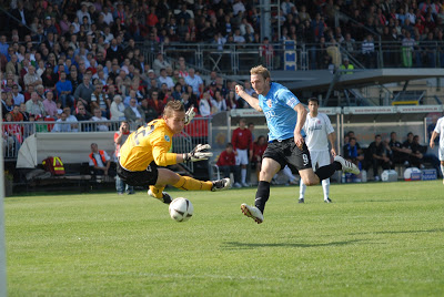 Ingolstadt war nur über 30 Minuten hin die bessere Mannschaft in Regensburg. Allerdings verteidigten die Schanzer gut und souverän und konnten immer im richtigen Moment die offensiven Stiche setzen, die zum Sieg beitrugen. Moritz Hartmann war mit seinen zwei Toren der Mann des Tages. Auch Michael Lutz spielte im Tor Klasse. Das gesamte Team hat Lob für diese Leistung verdient. Die Konkurrenz hat für den FC04 gespielt, die nun nur noch zwei Punkte Rückstand auf den Tabellenplatz 1 haben. Sandhausen verlor mit 1:2 gegen Erfurt. Unterhaching verlor mit 1:2 gegen Offenbach und Burghausen kam mit 1:6 in Heidenheim unter die Räder. Nächste Woche steht das nächste Spitzenspiel für den FC04 an. Zuhause empfängt man die SpVgg Unterhaching.