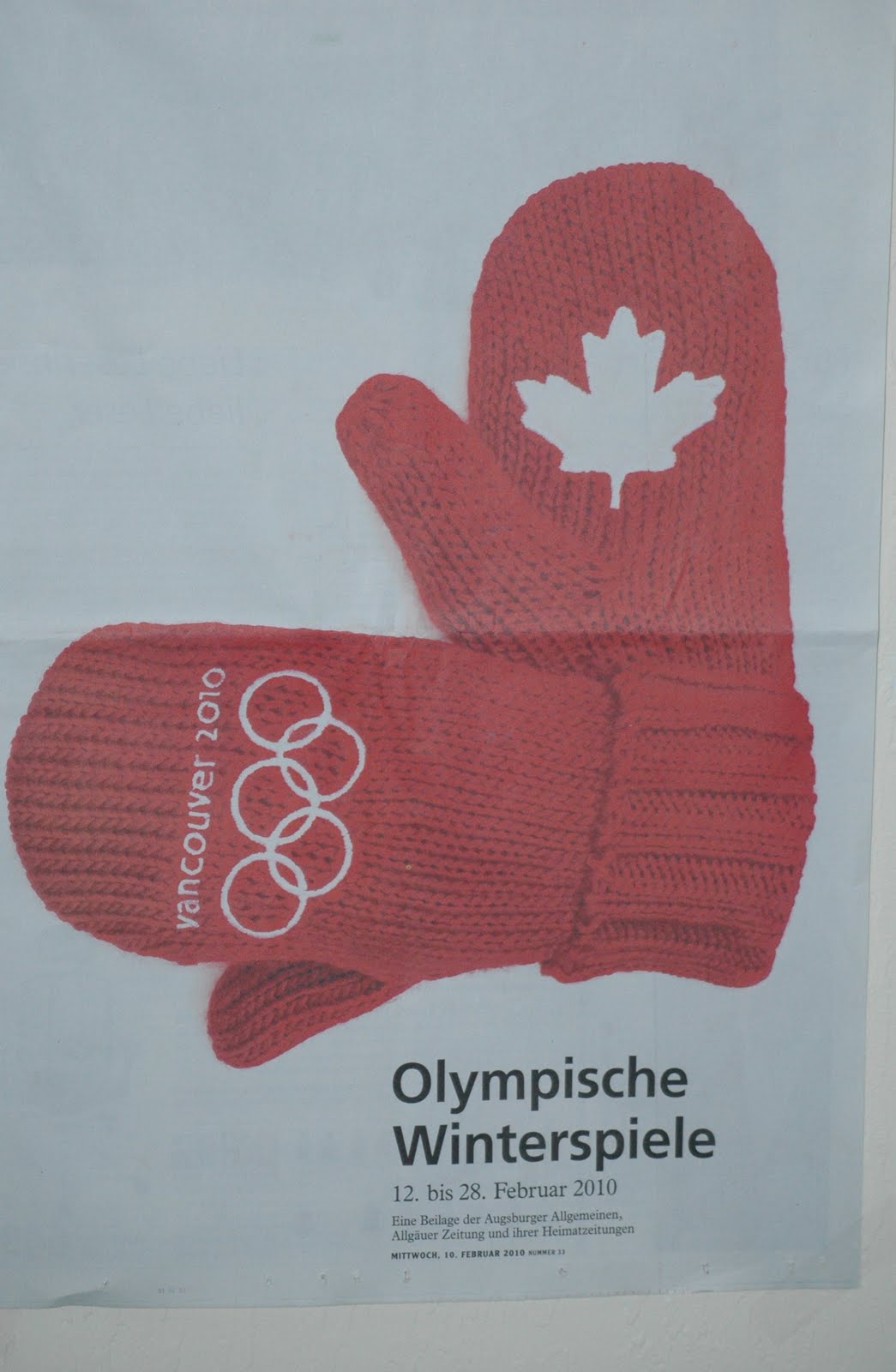 Heute lag eine Sonderbeilage für die Olympischen Spiele der Augsburger Allgemeinen und ihren Heimatzeitungen bei. Das Titelblatt habe ich an die Wand gehängt als Poster.