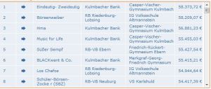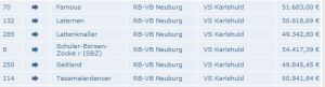 Oben seht ihr die aktuellen Platzierungen der Gruppen die von der VS Karlshuld teilnehmen. Unten die Platzierungen bundesweit.