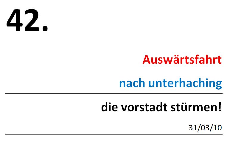 Am Montag werden die Englisch-Referate nochmal generalsaniert und ein bisschen schon Mathe geübt. Schadet nicht. Am Dienstag geht es nach Unterhaching zur 42. Auswärtsfahrt unter dem Motto „Vorstadt stürmen.“ Mittwoch ist wieder Luft für´s Lernen. Am Donnerstag geht es um weiter, mit der Stamm Totila Materialparty. Hier machen sechs Pfadi-Jungs Materialraum und Höhle (Pfadi-Raum im Obergeschoss) wieder fit. Material wird aussortiert und alles aufgeräumt. Los geht der Spaß um 10:00 Uhr. Am gleichen Tag ist der „Rock the Back-Day“ hier wird den Hammer-Grundkurs vom Jahr 2009 erinnert. Mit einem Blog-Post-Special zum Thema. Außerdem geht das neue Blog-Rubriken-Konzept an den Start. Am Freitag ist dann wieder frei. Am Samstag ist dann volles durchmachen angesagt. Die Osternacht der evangelischen Kirchengemeinde steht auf dem Programm, Pfadis aus dem Stamm Totila werden sich auch beteiligen, auch mit meiner Wenigkeit. Der Spaß beginnt um 21:30 Uhr und endet mit dem Morgen-Gottesdienst um 5:45 Uhr. Also eine volle Woche. Doch bevor es zur Osternacht geht, erwartet der FC Ingolstadt zuhause Carl Zeiss Jena.