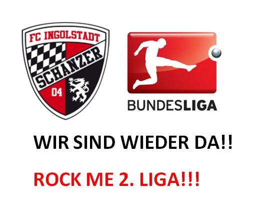 Aber zurück zum Sportlichen. Ingolstadt spielt nächstes Jahr wieder 2. Liga! Wir sind wieder da und wie! Ein paar Nachlesen zur Saison folgen noch. Jetzt wird erstmal gefeiert. Zurück in der 2. Liga FC Ingolstadt 04! Rock me 2. Liga again! Düsseldorf wir kommen, Berlin wir kommen gleich zweimal, Augsburg wir kommen. Macht euch gefasst, die Schanzerfestung ist wieder da!