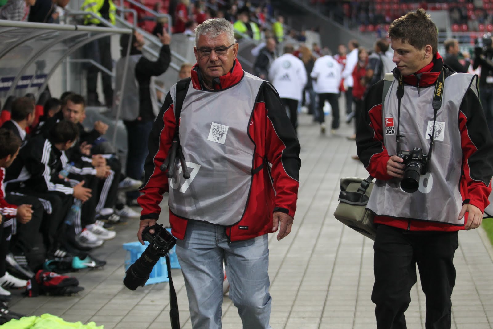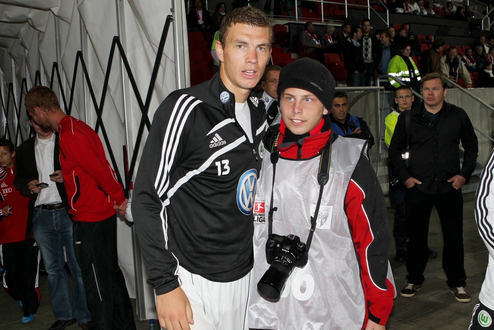 Ja fotografieren ist schon eine Arbeit, auch wenn das einige nicht glauben. Man muss immer die Augen offen halten, für besondere Momente und immer den Finger auf dem Auslöser bereit haben. Hier noch zwei Fotos zur Audi Sportpark Eröffnung. Mein Großvater und ich, sowie das Foto mit Bundesliga-Torschützenkönig Edin Dzeko. Und selbst wenn man arbeitet, nimmt man sich doch kurz Zeit um den großen Stars, die man sonst nur aus dem Fernsehen kennt, ganz nahe zu kommen. Doch die eigentlichen Stars sind und bleiben meine Schanzern, von denen Trikots in meinem Zimmer hängen und für den Verein spielen, den ich immer unterstützen werde. In guten wie in schlechten Tagen.
