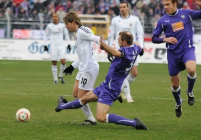 In einem spannenden und interessanten Zweitligaspiel gaben sich kämpferisch weder Gastgeber Aue noch Ingolstadt die Blöße. Am Ende kam es verdient zur Punkteteilung im Erzgebirgsstadion. Benno Möhlmann trat zum dritten Mal in Folge mit der gleichen Mannschaft an. Aue war nach der 6:0-Klatsche im Ostderby gegen Cottbus natürlich zuhause auf Wiedergutmachung aus. 7300 Zuschauer sahen, ein stark beginnendes Aue. Bereits nach drei Minuten hatten die Gastgeber die erste Chance. Nachdem Hochscheidt flankte, köpfte Schlicke knapp über die Latte. Dann passierte eine ganze Weile gar nichts. Viele Fouls, viele Pfiffe der Fans, wenig Spielfluss. Ingolstadt probierte gegen tief stehende Auer einiges, konnte sich allerdings keine Chancen erarbeiten. Aue machte die Räume eng und erstickte somit die Angriffsversuche der Gäste im Keim. In der 26. Minute schreckten die Ingolstädter Fans auf. Tobias Fink senste an der Strafraumgrenze einen Auer Spieler um. Nur denkbar knapp, dann hätte es Elfmeter gegeben. Den darauffolgenden Freistoß aus aussichtsreicher Position konnte der Tabellenführer nicht nutzen. Aue war nun spielbestimmend, allerdings stand Ingolstadt gut und lies somit wenig Chancen zu. Dann zog Hensel aus knapp 20 Metern ab, allerdings brachten die Ingolstädter Verteidiger noch einen Fuß dazwischen (33.). Mit dem 0:0 ging es in die Halbzeitpause.