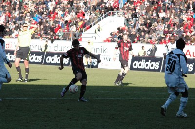 Der FC Ingolstadt 04 bot Buddle und Caiuby von Anfang an auf. Caiuby besetze die linke Flügelseite. Buddle spielte als einziger Stürmer, Leitl spielte als verkappter Stürmer dahinter. Das Spiel begann offensiv und beide Teams ließen gleich erkennen, dass es für beide um alles geht. Müller verpasste eine Hereingabe gleich zu Beginn des Spiels nur denkbar knapp. Auf Ingolstädter Seite, schickte Leitl seinen Mitspieler Buddle, allerdings war Bielefelds Torwart Eilhoff zur Stelle. Immer mehr in den Mittelpunkt spielte sich dann Neuzugang Buddle. Erst schoss er über die Latte, dann ging sein Schuss nur knapp am Kasten der Gäste vorbei und seine letzte Chance innerhalb kurzer Zeit, war ein Kopfball der nur knapp neben den Pfosten einschlug. Dann Spiel verflachte danach, nach und nach. Wenig Torchancen, die 7.000 Zuschauer im Sportpark sahen in Folge ein richtiges Kellerduell, mit vielen Zweikämpfen, allerdings wenigen spielerischen Akzenten von beiden Mannschaften. Vor der Halbzeit dann, dominierten die Schanzer wieder das Spielgeschehen. Buddle mit spielte mit Überblick zur Strafraumgrenze, dort stand Andreas Buchner. Per Direktschuss erzielte Buchner das 1:0. Der Ball ging unten ins Eck, für Eilhoff war nichts zu halten.