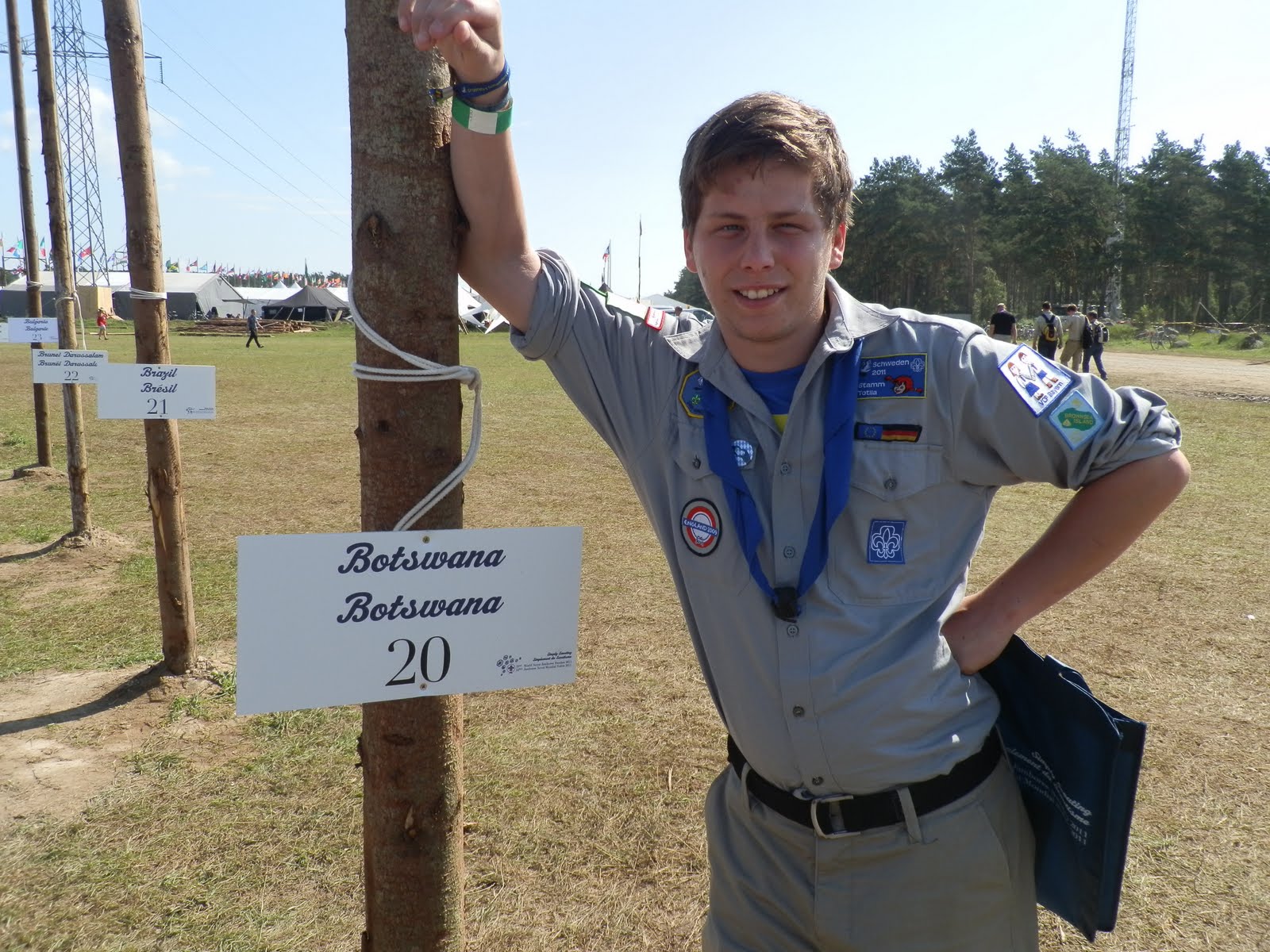 Das World Scout Jamboree ist das Weltlager der Pfadfinder, dass nur alle vier Jahre stattfindet. Auf das Jamboree kommt man nur zwischen 14 und 18 Jahren, danach nur noch als IST International Service Team. Wir hatten als nun die einmalige Chance als Teilnehmer auf das Jamboree zu fahren. Total aufgeregt warteten wir im Bus darauf, dass wir uns Rinkaby näherten. Auf einem riesigen Militärgelände fand das Jam dieses Jahr statt. Angeschrieben war der Besucherbereich schon lange, doch bis zum Jam sollte es noch dauern. Unser Bus hielt auf einer Landebahn der schwedischen Luftwaffe. Hier ist der Parkplatz der Besucher. Ein österreichischer Jamboree-Helfer begrüßte uns freudeschreiend mit den Worten: „Welcome to the World Scout Jamboree.“ Mit einem Shuttle-Bus wurden wir dann schließlich auf das eigentliche Jamboree-Gelände gefahren. Der erste Eindruck war überwältigend. Als erstes fielen uns die vielen Fahnenmäste auf, im Eingangsbereich. Das Jamboree-Gelände konnte sippenweise erkundet werden. Wir machten uns auf dem Weg die Kontingentsstraße zu besichtigen. Hier zeigten die Länder-Kontingente ihre Präsentation, ihren Auftritt in sogenannten Headquarters. Wir statteten den Pfadis aus Mexiko, den Niederlanden, Schweiz, Liechtenstein, Belgien, Großbritannien, Norwegen, Schweden, Finnland einen Besuch ab. Außerdem waren wir beim Zentrum des Weltpfadfinderverbandes der Männer WOSM. Als wir durch die Kontingentsstraße durch waren, dort etliche Fotos machten, statteten wir dem riesigen Shop einen Besuch ab. Dieser Shop ist so groß wie die Essensausgabe auf dem Bundeslager. Um einmal die Zahlen zu begreifen. Auf dem World Scout Jamboree 2011 waren dieses Jahr über 38.000 Pfadfinder. Davon 8.000 Helfer. Auf dem VCP Bundeslager 2010 nahmen über 5.000 Pfadis teil. Dann entdeckten wir den großen Aussichtsturm. Auf diesem hohen Turm hatte mein tollen Blick über den riesigen Zeltplatz. Die Dimensionen werden einem trotzdem nur schwer klar. Wir spazierten weiter stauend über dem Lagerplatz und statteten dann den Schweizern einen Besuch ab. Im Schweizer Cafe machten wir schließlich unseren Mittag. Wir aßen angebrannte Creme, eine Schweizer Spezialität und lernten einen Schweizer Pfadfinder kennen. Von ihm bekam ich ein Schweizer Trupp-Abzeichen.