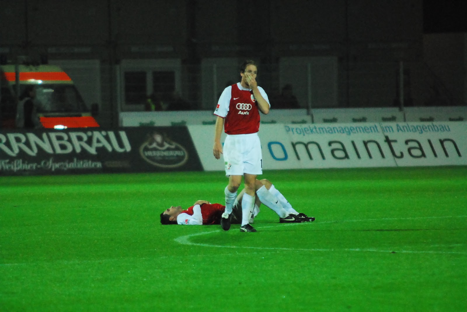 | Nachdem Aufstieg ging es gleich wieder runter. Mario Neunaber und Michael Wenczel, nachdem verlorenen Heimspiel gegen den FC St. Pauli. Die Hamburger knipsten damals das Licht aus. |