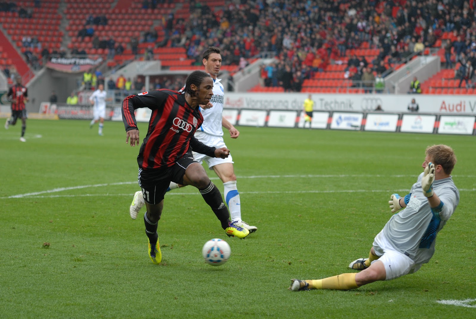 Trainer Tomas Oral, wollte gegen den Karlsruher SC vollen Einsatz seiner Elf sehen. Die Konkurrenz aus dem Keller spielte voll für uns. Damit war die Vorgabe klar, ein Sieg und der Klassenerhalt ist fast sicher. 8328 Zuschauer fanden sich nach dem 1:1 in Frankfurt in den Sportpark ein. Die erste Chance hatte allerdings der KSC der mit zahlreichen Fans nach Oberbayern reiste. Groß verzog nur knapp am Kasten vorbei (3.). Caiuby schoss in der achten Minute knapp am Kasten vorbei. In der 14. Minute hieß es dann: Tor für den FC Ingolstadt 04. Caiuby spielte quer zu Akaichi, der die halbe Karlsruher Abwehr austanzte und dann überlegt ins rechte Eck abzog. KSC-Keeper Orlishausen war ohne Chance.