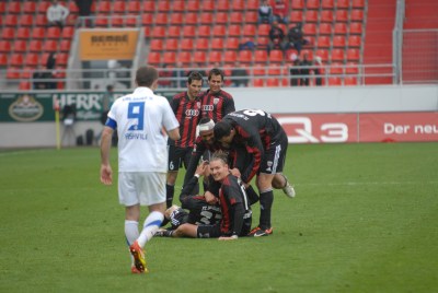 Damit setzt der FC04 seine eindrucksvolle Serie von 14 ungeschlagenen Spielen weiter fort. Sieben Punkte Vorsprung auf den KSC (Platz 16) und acht Punkte auf Hansa Rostock (Platz 17) sind ein gutes Polster. Beim Derby am Samstag gegen den TSV 1859 kann der Klassenerhalt endgültig fix gemacht werden. Heute sangen bereits die Fans: „Nie mehr 3. Liga“