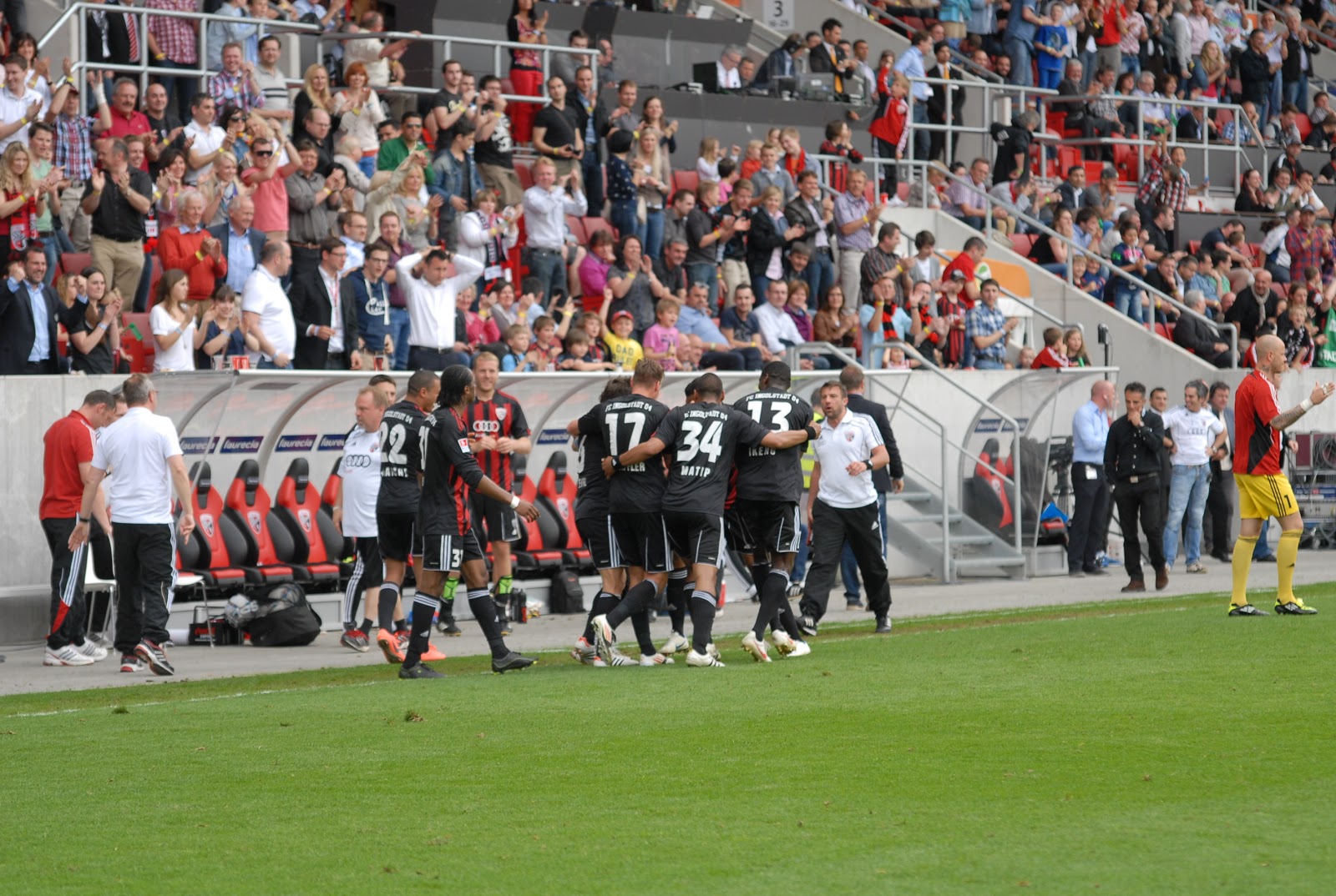 Eine glückliche Führung. In den letzten Minuten ließen die seit nun mehr neun Spielen zuhause ungeschlagenen Schanzer nichts mehr anbrennen. Die Mannschaft feierte nach dem Spiel mit ihren Fans den Klassenerhalt. Die Schanzer bleiben auch nächstes Jahr in der 2. Bundesliga.