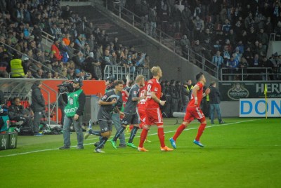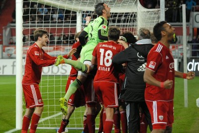 Stadionsprecher Mele entgegnete cool: „Die könnt ihr auch sehen, wenn ihr euch ordentlich aufführt.“ Es war nicht das erste Mal dass bei einem Derby die Löwen negativ auffielen. Beim 9. Derby kam es zu rassistischen Äußerungen gegenüber Verteidiger Danny da Costa. Die Löwen wollten nochmal den Bock umstoßen. Doch Ingolstadts Defensivmannschaft blieb cool und ging beherzt zur Sache. Kurz vor dem Ende fielen dann dem gekränkten Schanzer Herz viele Steine vom Herzen. Lappe bediente Quaner, der 55 Sekunden nach seiner Einwechslung mit seinem 2:0 den Deckel draufmachte. Die komplette Mannschaft samt Trainer jubelten vor der Südtribüne über das Tor. Es war vollbracht! Nach neun Spielen, nach sechs Jahren, endlich der erste Derbysieg!