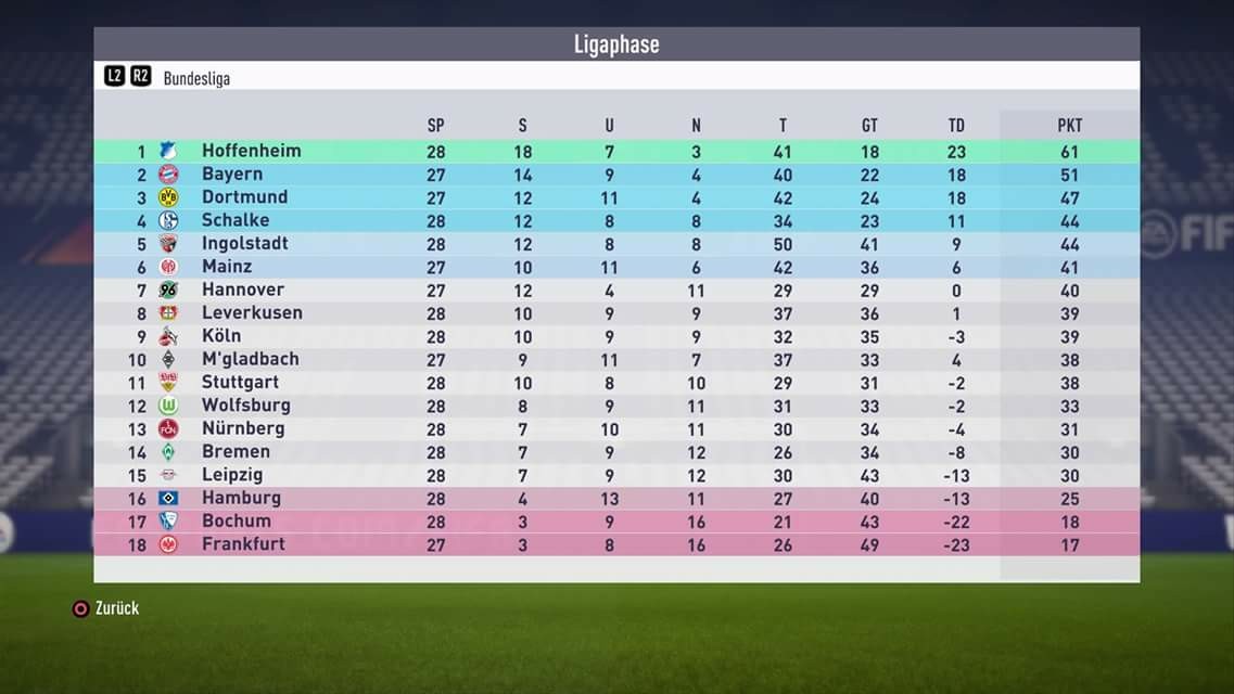 Gegen den Tabellenführer und wohl designierenden Deutschen Meister sprang im Karrieremodus bei FIFA 18 ein 1:1 heraus. Aktuell plagt mich zu allen Überfluss das Verletzungspech und der nächste große Gegner mit Dortmund steht vor der Tür. Das Spiel FCI – Hoffenheim gibt es übrigens als komplettes Video.