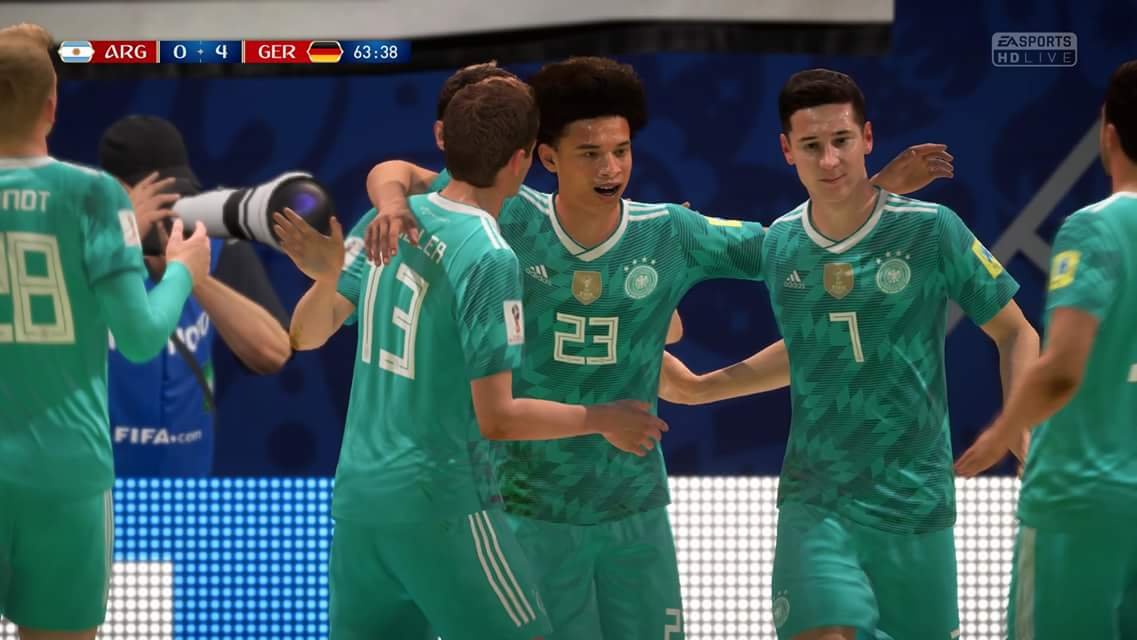 Im Halbfinale stand ich dann Argentinien gegenüber. Es war ein zäher Beginn in St. Petersburg. Früh musste Werner verletzt runter. Ich stellte Sane auf die Stürmerposition neben Müller. Das zahlte sich aus! Denn Sane erzielte vier Tore und war damit am sensationellen 7:1-Sieg (welch Ironie) beteiligt.