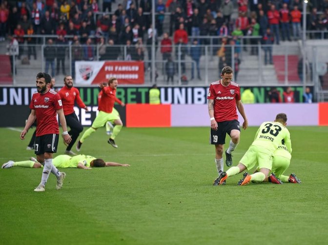 Während die Spieler aus Wehen-Wiesbaden ausgelassen feierten, sackten die Schanzer zusammen. Nach einem dramatischen Spiel war der zweite Abstieg in die 3. Liga besiegelt. Wehen-Wiesbaden dagegen kehrt nach zehn Jahren Abstinenz wieder zurück ins Unterhaus.