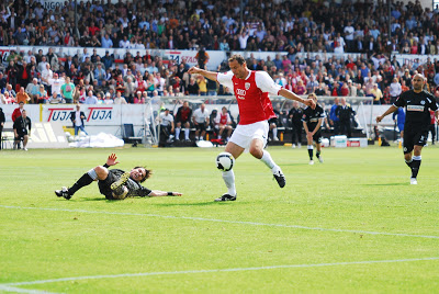 In den ersten 20 Minuten des Spiels, passierte nicht viel. Aber dann kam das Spiel langsam in Fahrt. Bance hatte die erste Torchance des Spiels (22.) durch einen Kopfball. Vier Minuten später, durften die Ingolstädter Fußballfans zum ersten Mal jubeln. Michael Wenczel köpfte nach einer Ecke von Zecke Neuendorf zum 1:0 ein. Die Partie war durch viele Zweikämpfe geprägt. Besonders der FC Ingolstadt ackerte, man merkte den Willen der Mannschaft deutlich. In der 32. Minute rückte der Schiedsrichter wieder in den Spielmittelpunkt. Michael Wenczel warf weit ein und Mainz´s Schlussmann Wache, haute sich das Ding selbst rein. Er wollte den Ball abwehren, allerdings wurde die geplante Parade zur Beihilfe zum 2:0. Doch der Schiedsrichter pfiff aufgrund eines Fouls von Vratislav Lokvenc ab. Eine Fehlentscheidung! Auch die Fernsehbilder belegen, dass Lokvenc den Torwart nicht foulte. Eine Minute später, bekam der FC04 dann Ausgleich. Soto flankte per Freistoß zu Noveski, der zum 1:1 einköpfte. Wieder ein Standardgegentor für den FC Ingolstadt. Kurz vor der Halbzeit hätte Mainz sogar noch in Führung gehen können (44.)