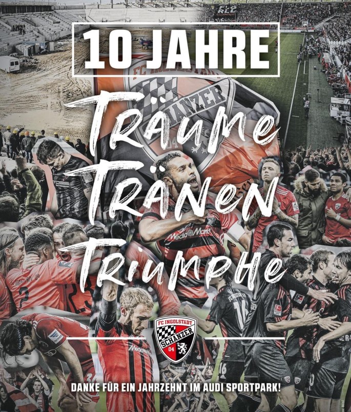 Ein ausführlichen Rückblick auf Highlights im Sportpark hat der Donaukurier zusammengestellt: https://www.donaukurier.de/sport/fussball/fcingolstadt04/fc04-berichte/Die-Heimat-der-Schanzer-feiert-zehnten-Geburtstag;art19158,4637315