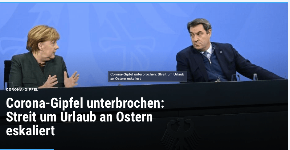 Gestern gegen 22:00 Uhr war ich zuhause von meinem Nebenjob. Dann schaute ich mir die letzten 10 Minuten des Zweitliga-Spitzenspiels Düsseldorf – Bochum an. Danach schaltete ich bei einer Tasse Kaffee auf Phoenix um. In der naiven Annahme bis Mitternacht kommen Müller, Merkel und Söder hoch aufs Podium und verkünden irgendwelche neue Regeln für unser Land.