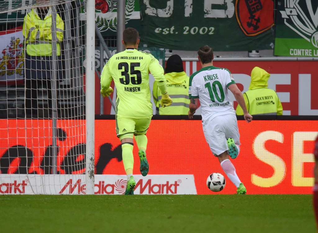 Der FCI stand unter Druck und begann gut. Dario Lezcano brachte den FCI in Führung (32.). In der Nachspielzeit der ersten Halbzeit glich Kruse per Foulelfmeter aus. Pascal Groß brachte den FCI in der 62. Minute wieder in Führung. Und dann begann die große Kruse-Show. Max Kruse traf in den Spielminuten 81, 87 und in der Nachspielzeit. Zack 4:2. Bremen dreht dank Kruse zweimal das Spiel. „Europapokal, Europapokal“ dröhnte es schließlich durch den Sportpark. Die Europapokal-Plätze verpasste Werder am Ende knapp, der FCI stieg ab. Vier Jahre später treffen beide Teams in der 2. Liga aufeinander. Für den FCI ist die 1. Bundesliga weit weg, für Bremen Europa.