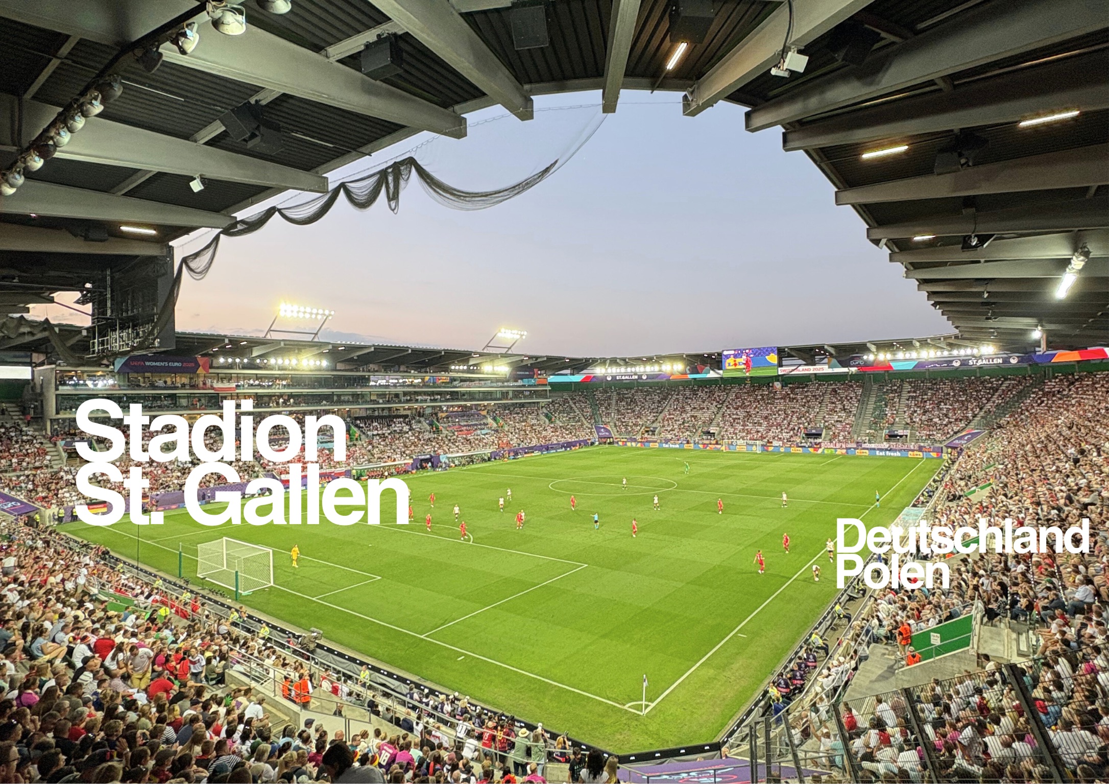Drei Städte, drei Spiele. Vergangene Woche ging es für mich und meine Freundin zweimal zu unseren Nachbarn in die Schweiz. Das Ziel: die Frauen-EM. Unmittelbar nachdem die Ticket-Lotterie öffnete, bewarb ich mich um Karten für Spiele in St. Gallen und Zürich. Wie üblich, werden die finalen Partien erst nach Auslosung bekannt. Umso mehr freute ich mich damals, das einmal Deutschland und die Titelverteidigerinnen aus England dabei waren. Also ging es vorletztes Woche los, ab nach Bregenz, in unsere Unterkunft und dann nach St. Gallen zum ersten Spiel unserer DFB-Elf.