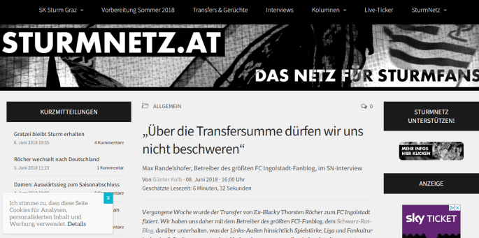 Nachdem Transfer von Thorsten Röcher von Sturm Graz durfte ich ein Interview mit sturmnetz.at führen. Hier findet ihr das komplette Interview: Sturmgraz.at - Über die Transfersumme dürfen wir uns nicht beschweren